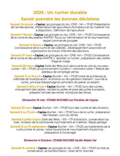 Le Rucher-école de Caylus est situé dans le Tarn-et-Garonne à Caylus, et propose des formations et animations pour apiculteurs amateurs à confirmés.